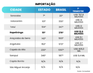 Itapetininga exporta US$ 115 milhões no primeiro trimestre de 2026